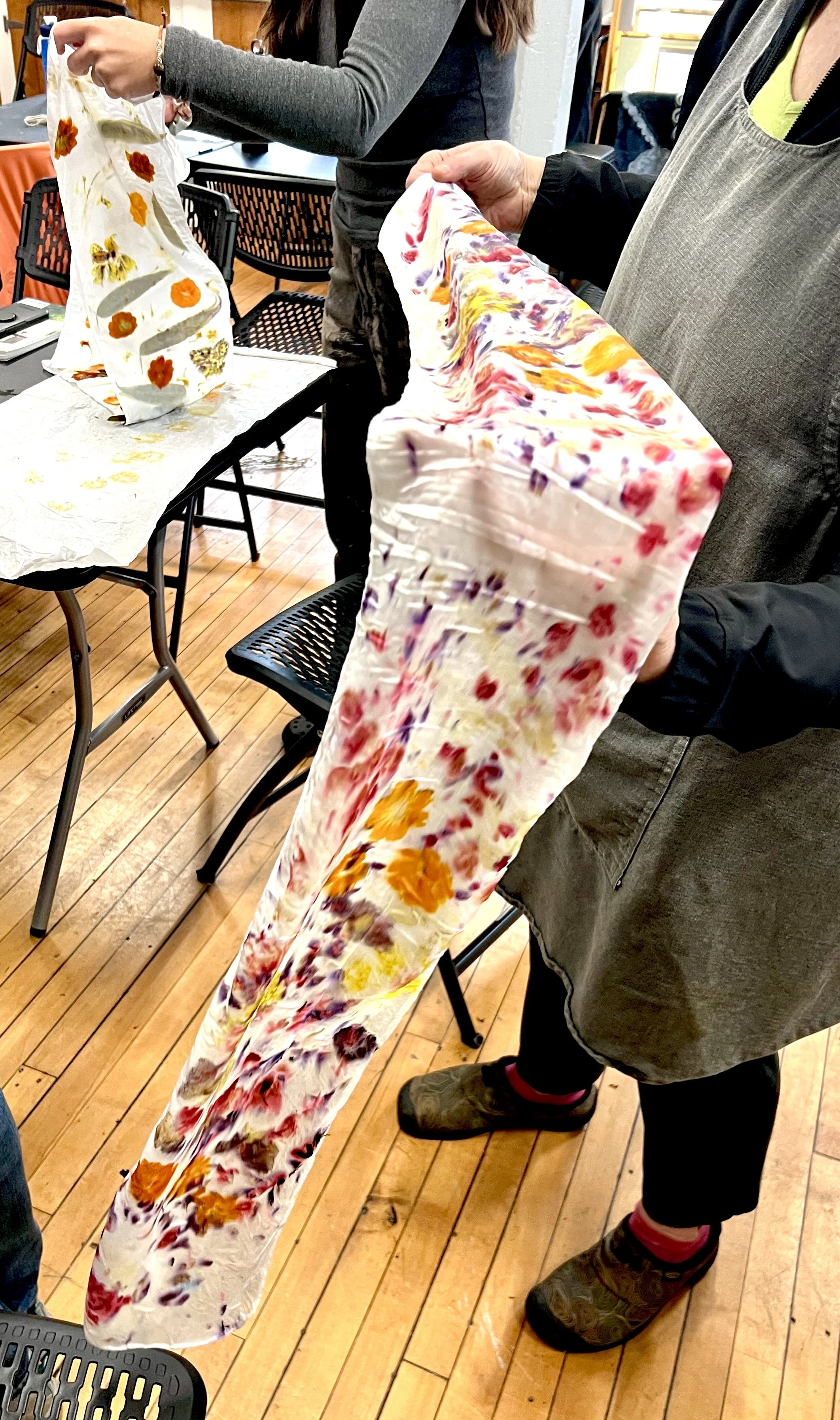 Hands-On Creation: You will leave with your own unique botanical printed silk scarf and the knowledge to continue your eco-printing journey at home.