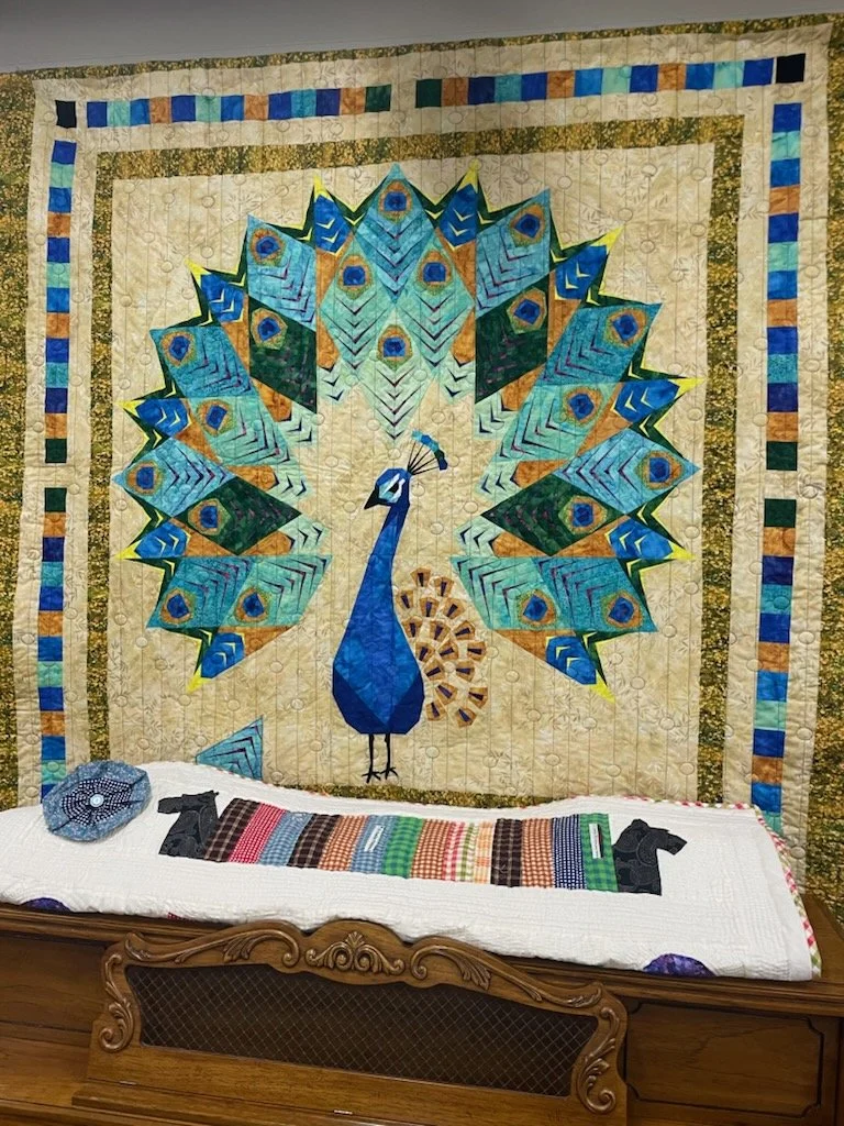 Mitchell Q Sellers "Peacock Loses a Tail Feather", Quilt. I'm a Quilt Artist. I'm originally from and grew up in Georgia. I learned basic quilt making skills from my grandmother. I earned my BFA at Georgia Southern University. I studied acting, improv, and dance and worked in Chicago for 5+ years. I toured with theatre companies for several years. I lived in Boston for 25 years. Moved to the Berkshires (Lee, MA) 3 years ago. I began quilt design as a hobby and it grew into a passion.